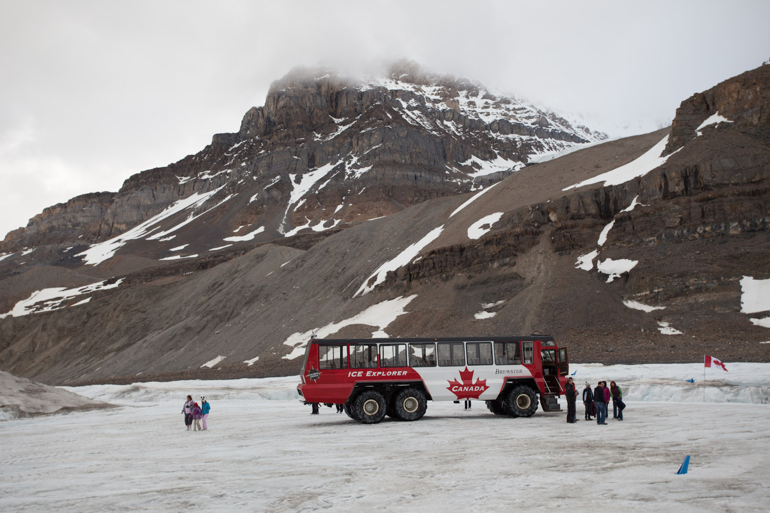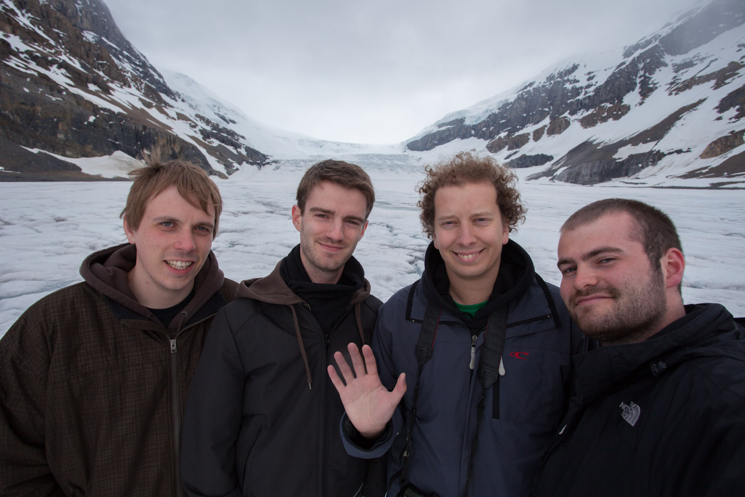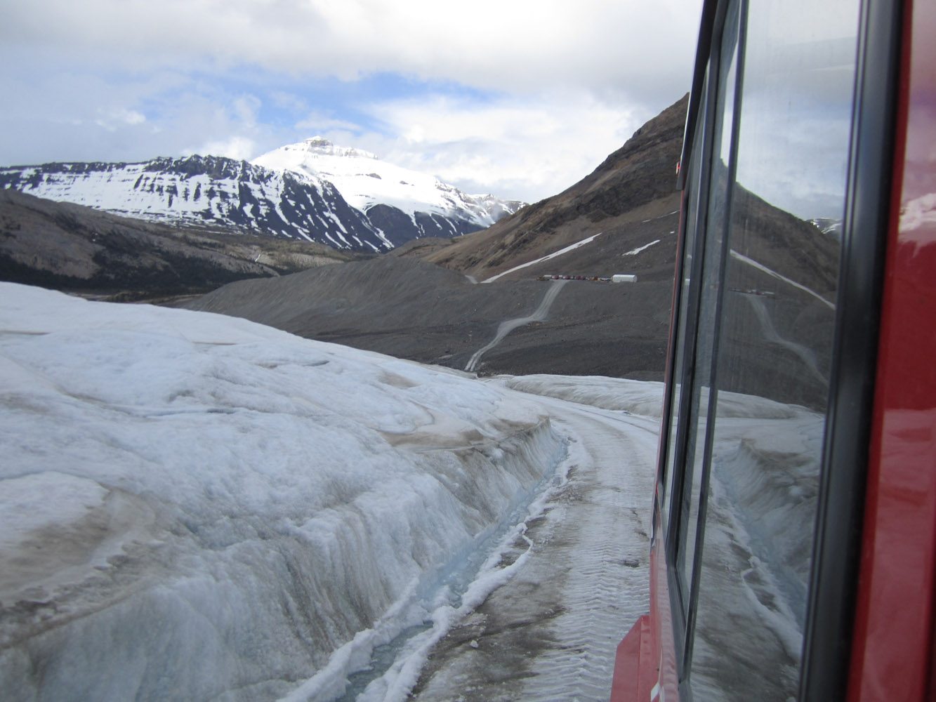 Ja, en dan eh. Dan hebben we de Icefields Parkway afgereden. Een baantje tussen de gletsjers. En terwijl we dan toch bezig waren, zijn we gestopt aan de Columbia Icefield gletsjer, want daar hadden ze zoiets als monsterbussen die u een stuk meenamen op de gletsjer. De beelden zeggen meer dan wat ik hier nu zou moeten typen. Ma twas dus serieus de moeite, dikke aanrader. En het buske op zich was anders ook nie mis. De motor-specs zou ik moeten opzoeken, maar het grapke kostte 750.000$ per bus (5000$ per band) en de wielen waren allemaal los van elkaar aangesloten op de motor.