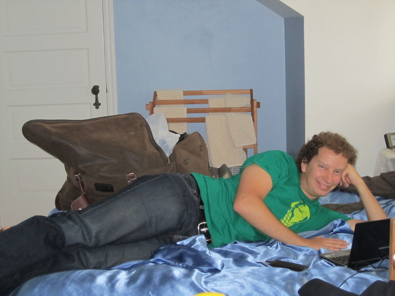 “You forgot these!”, kwam onze hippie-gastvrouw, net toen we wilden vertrekken, op haar blote voeten in de regen naar onze auto aangelopen met een bril in haar handen. Uiteraard was het onze bril niet, maar één die ik een uur ervoor onder Koen zijn bed had gevonden. Twas een vrouwenbril! Maar geen idee of het van een hete blondine was, want er lag ook nog een zwaard onder zijn bed. Vreemd, zoveel is zeker.