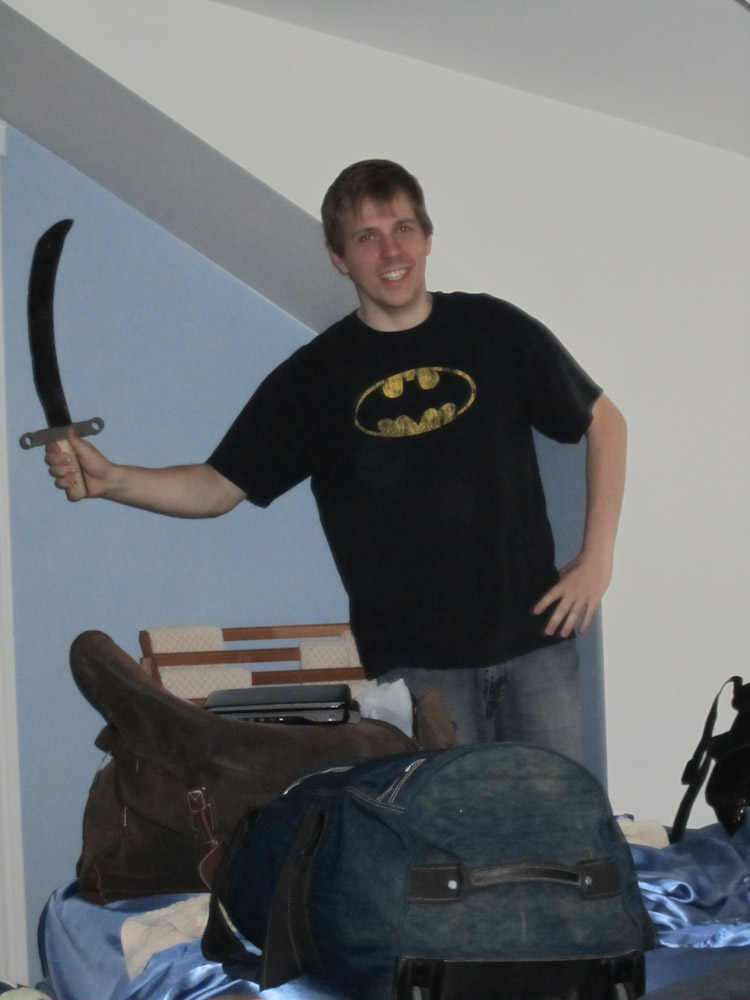 Aaaah, Gilles is er ook. Het zwaard heeft Koen bijgehouden; we houden het bij voor elke flik te imponeren wiens wezen ons niet aanstaat en voor elke beer te helpen met broodjes te smeren.