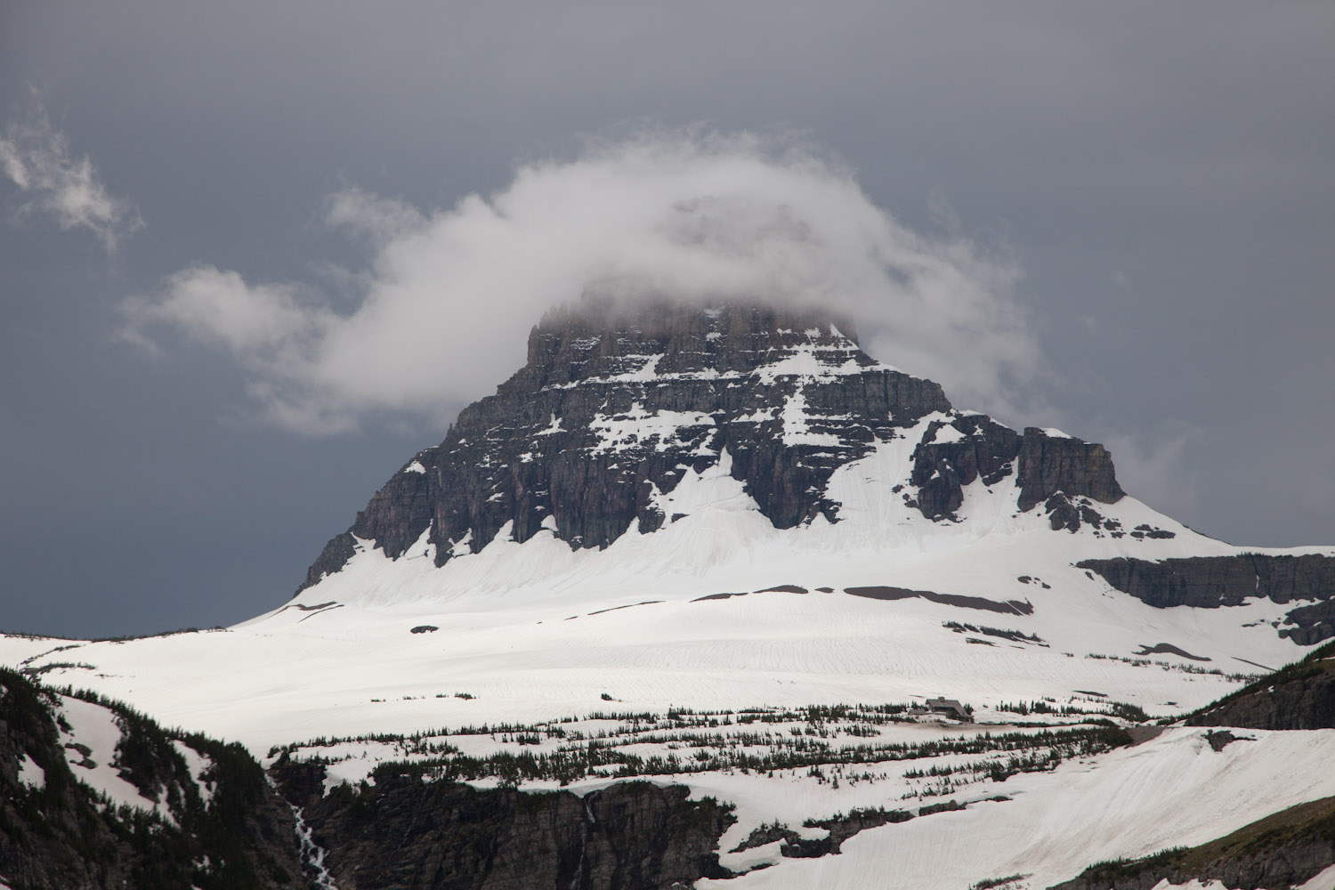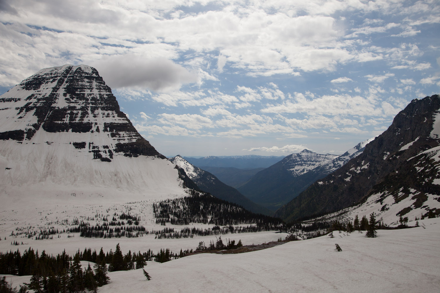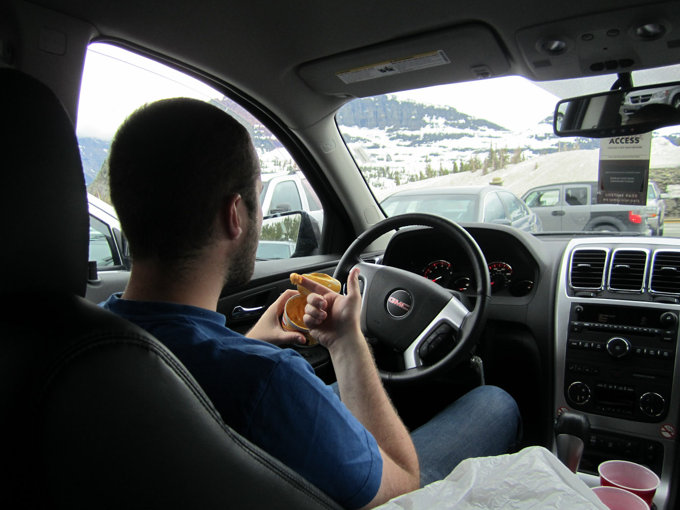 En dan reden we via de Going To The Sun Road richting Hidden Lake. Die weg is sinds eergisteren open voor verkeer en vrijgemaakt van alle sneeuw, en dat voor het eerst sinds dit jaar! Da is weer ideaal gepland van Coppens. Vooraleer naar Hidden Lake te gaan, aten we eerst nog ons zot middagmaal. En dan volgde de wandeling richting het Hidden Lake. Slechts 4,8km (heen en terug), maar twas er wel een op sneeuw, waardoor het maar traag vooruit ging.