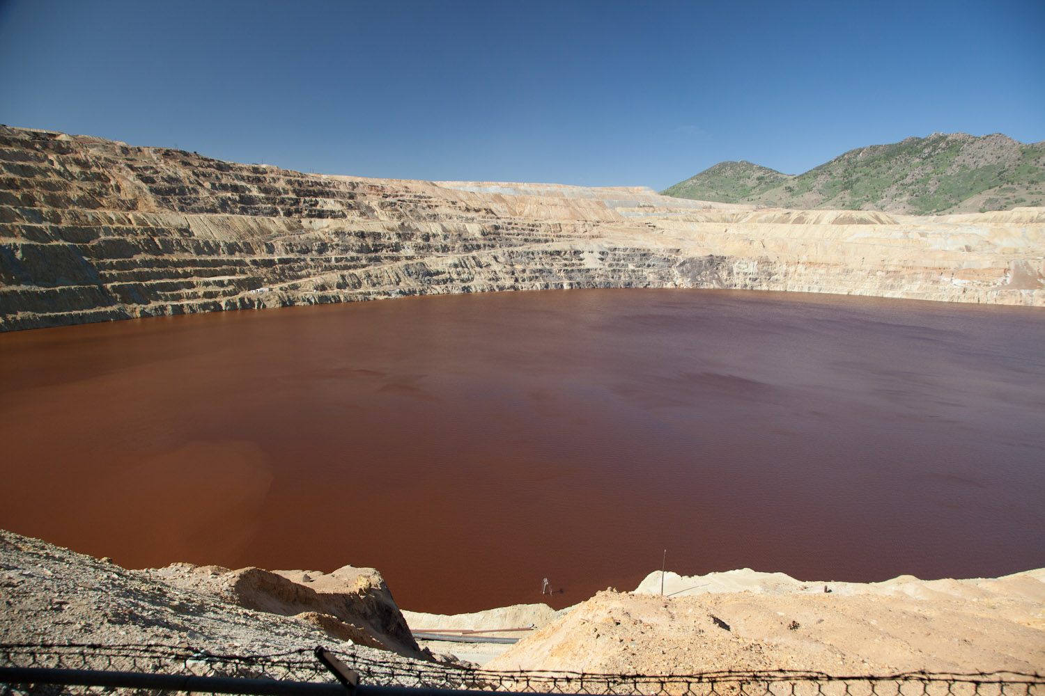 2e stop was aan een vuil gat in de grond dat stinkt (geen 7 letters): Berkely Pit. Daar deden ze tot 20 jaar geleden opgravingen naar koper en zo. Nu is het achtergelaten en ondergelopen met water (da gat is gelijk meer dan 1km diep) en is dat een vuil ziek spel geworden waar wij 2 flappen de man voor hebben betaald om toch maar eens te mogen kijken. Die commercie toch altijd eh! Het water had een pH van 2,5 (nie gezeverd) en er wordt onderzoek gedaan naar de organismen die daarin leven of ze mogelijks kunnen helpen bij kankerbehandeling (alweer niet gezeverd).