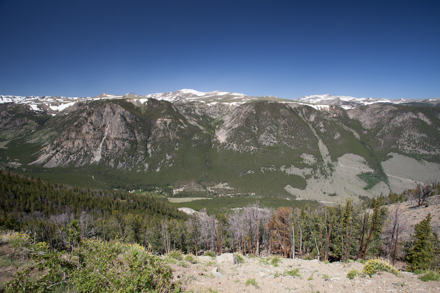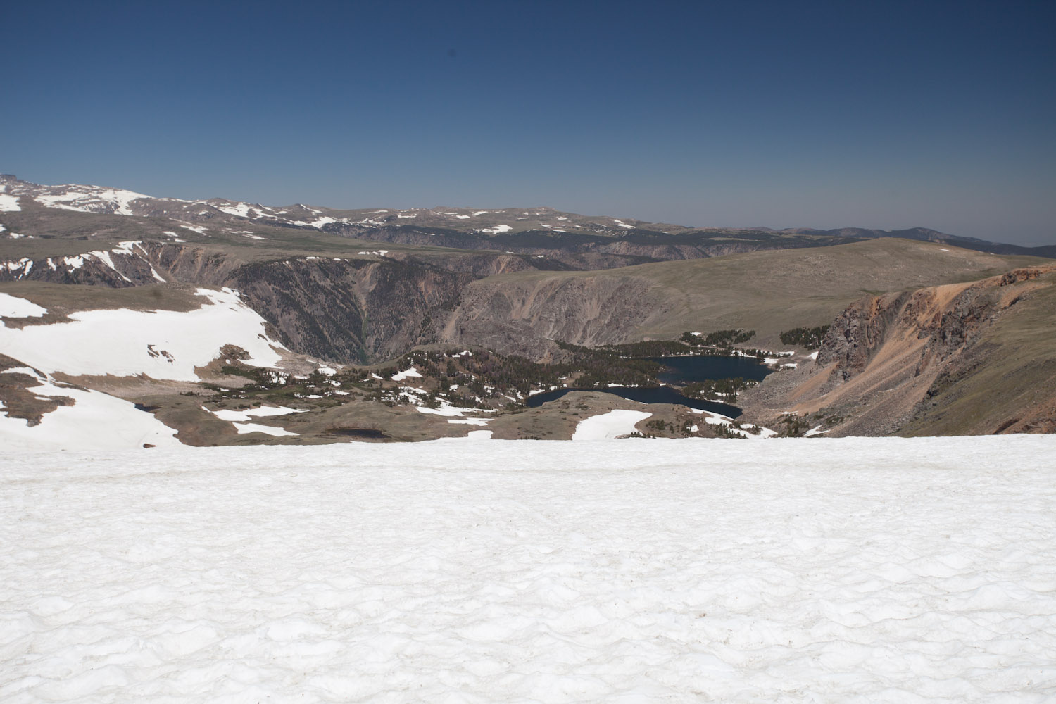 Owké, vandaag, wat hebben we gedaan. Een vré schoon wegske afgelegd: Beartooth Highway. Met nen sportwagen naar keuze is dit echt wel een prachtig baantje. Met nen dikken SUV blijft het nog steeds een schoon baantje, maar ge stapt best af en toe uit om wat van de omgeving te kunnen genieten. Twas effectief een highway, want ge mocht iets van 110km/u. Met dat verschil dat het een éénvaksbaantje is die uiteindelijk overgaat in haarspelbochten. Ma dus echt wel vré schoon. We stegen naar meer dan 3km hoogte, met sneeuw langs alle kanten en uiteindelijk passeerden we zelfs een skilift en zagen we een aantal skiërs bezig, net naast een gletsjer. Beetje absurd eigenlijk, want ik liep daar gewoon op mijn sletsen en korte broek.