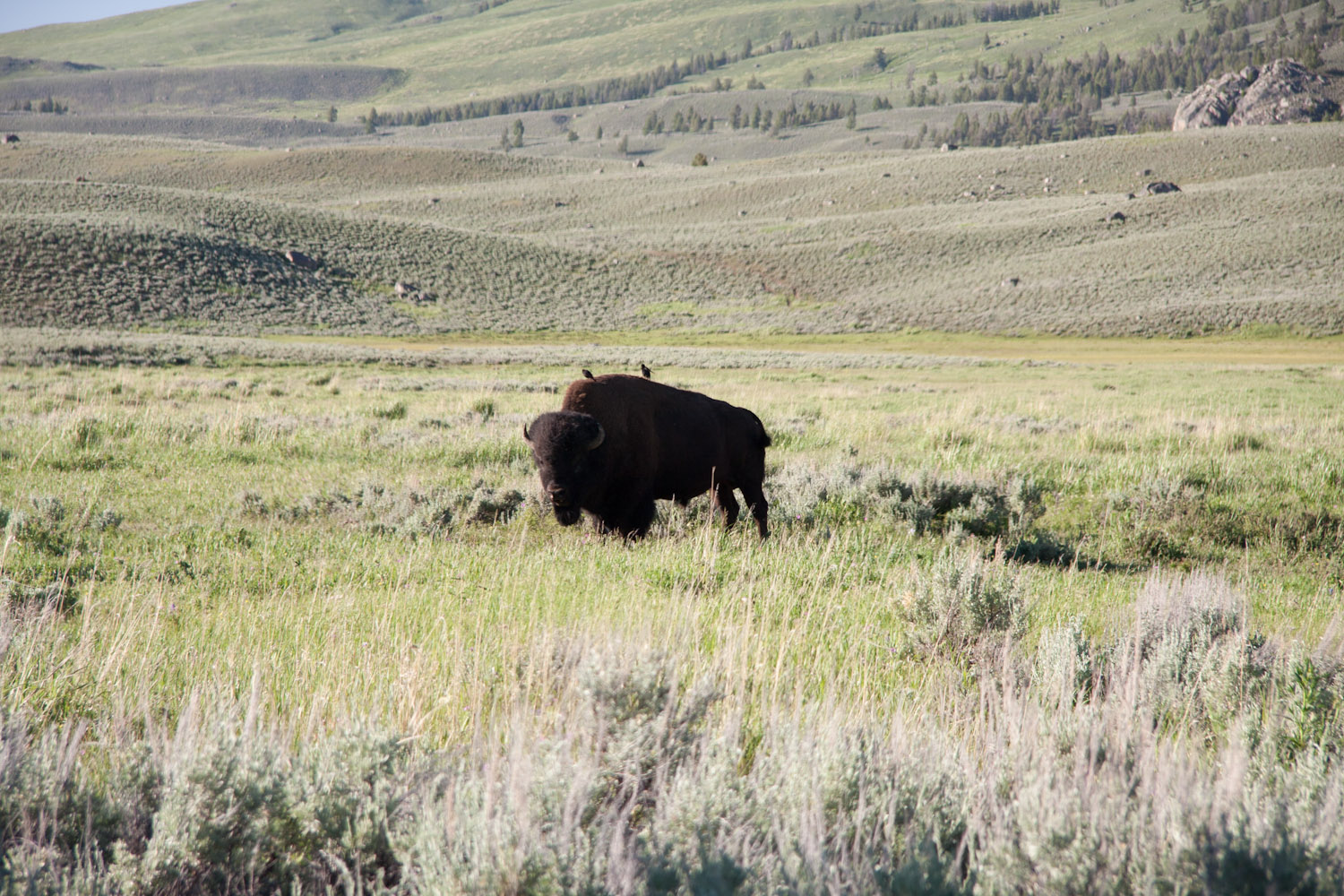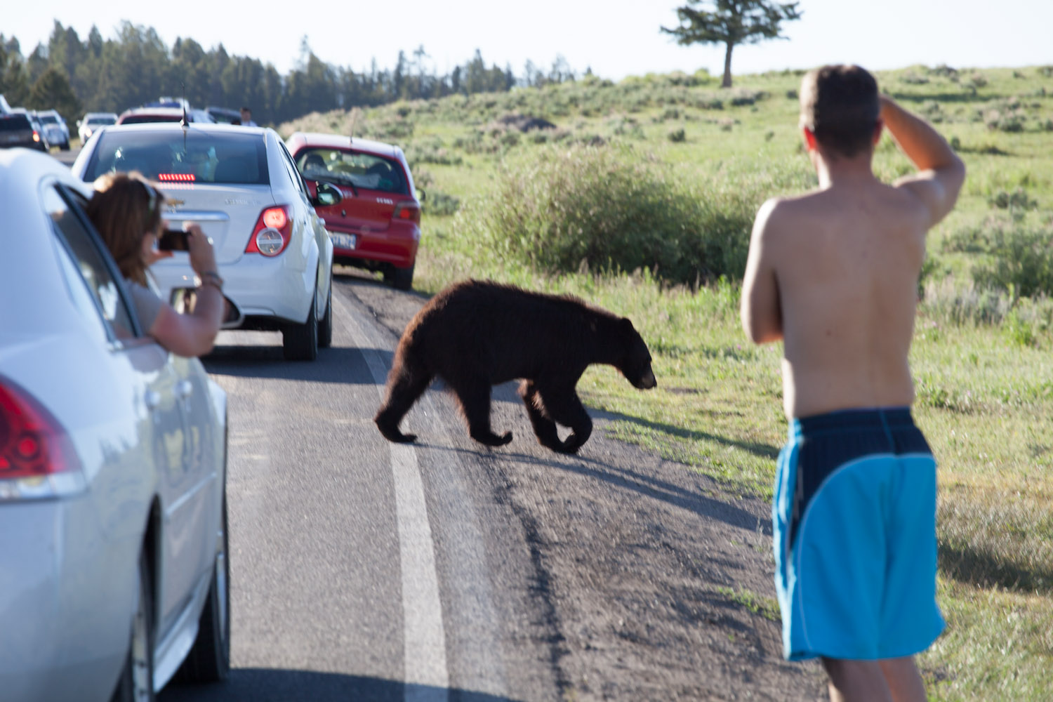 Dus nie voor te zeveren, maar als ge ooit eens hier passeert, dan moogt ge Beartooth-Highway ook op uw lijstje zetten van ‘zeker te bezoeken’. Na de middaglunch langs deze highway, vertrokken we richting Yellowstone. Waarschijnlijk een naam die iedereen wel bekend klinkt. Normaal gezien van de geisers en zo. Vandaag was echter een opwarmerke en zagen we enkel wat mooie zichten en een waterval van de dag. En ook een bruine beer van dichtbij. De beer was zelfs zo populair dat er een file ontstond en minstens 15 auto’s int midden van de baan parkeerden. En ook al staat overal dat ge minstens 100m afstand moet houden en in uw auto moet blijven: ongeveer iedereen stond van dichtbij foto’s te nemen.