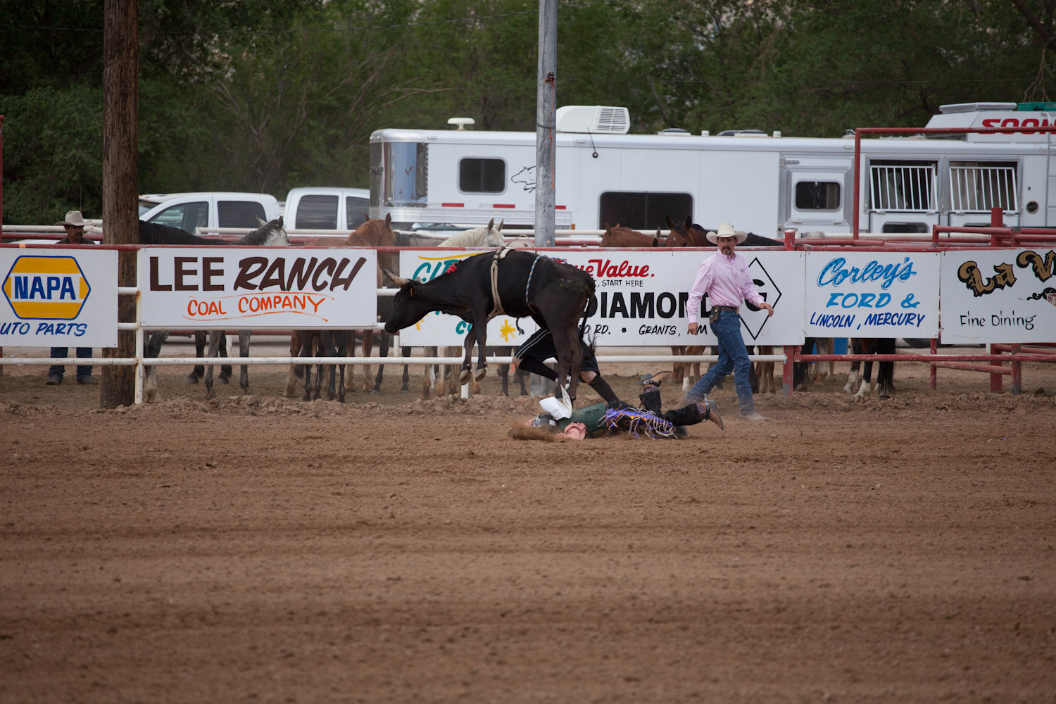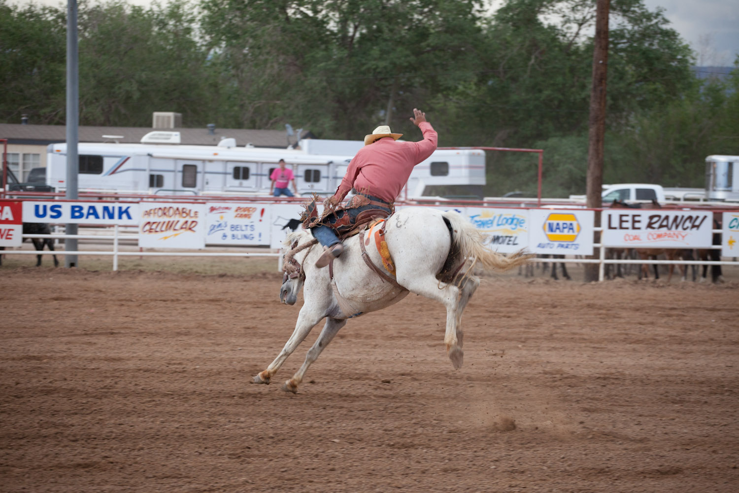 Rap weer in den auto richting een rodeo-evenement een uurtje verderop. Hoe het zo is kunnen uitkomen, kweet het ook niet, maar 20 seconden nadat we ons hadden neergezet in de tribune begonnen ze met de activiteiten. Kleine gastjes van 6 jaar die op een schaap moeten rodeo’en. Daarna wat dames die een lasso rond een kalf moesten krijgen. Dan het betere werk met venten die een kalf moesten vangen, tackelen en hun poten vastbinden. Zotte gasten. En na nog een paar showkes sloten ze af met rodeo op een stier. In totaal is er 1 klein gastje naar het ziekenhuis en zijn er 2 anderen gewond, maar voor de rest was er wel sfeer.
