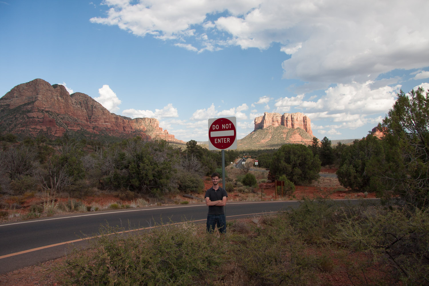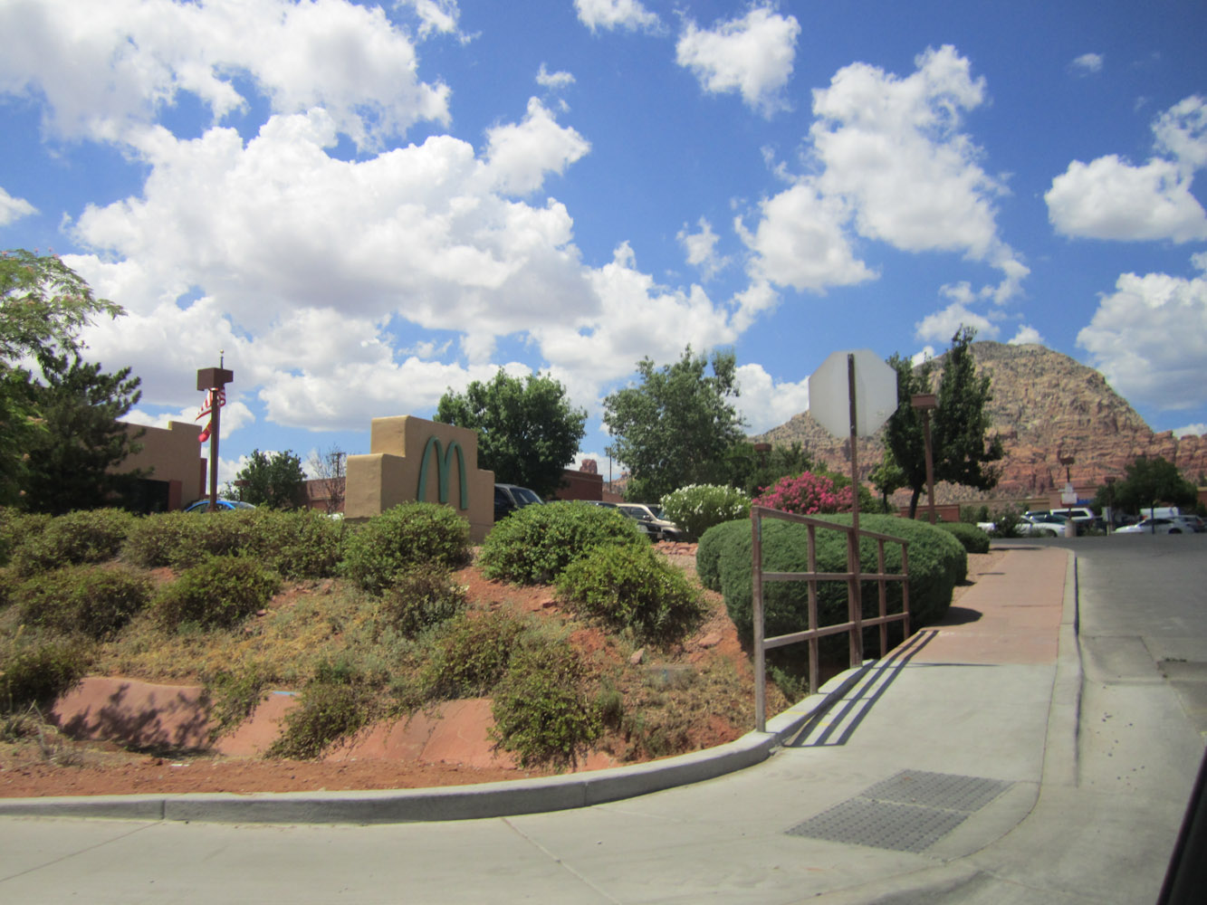 Ik hoop dat ge allemaal uw bretellen aanhebt, want vandaag zijn we 8 (jawel, dat is a-c-h-t) ronde punten tegengekomen onder de baan! De voorbije 7000km hebben we er in totaal 2 gezien, vandaag zien we er 8 extra. En dat allemaal in en rondom Sedona, het stadje waar de kleuren enkel bruin of groen mogen zijn. Zo ook voor de lokale McDonalds, die zijn ‘M’ in het groen heeft gemaakt. De aandachtige lezer heeft nu een Aha Erlebnis. Terecht, want vorig jaar waren we hier ook en vorig jaar zijn we ook eens binnengesprongen in de McDonalds. Ma twas maar voor 2 cheeseburgers per persoon, dan mag het eh.