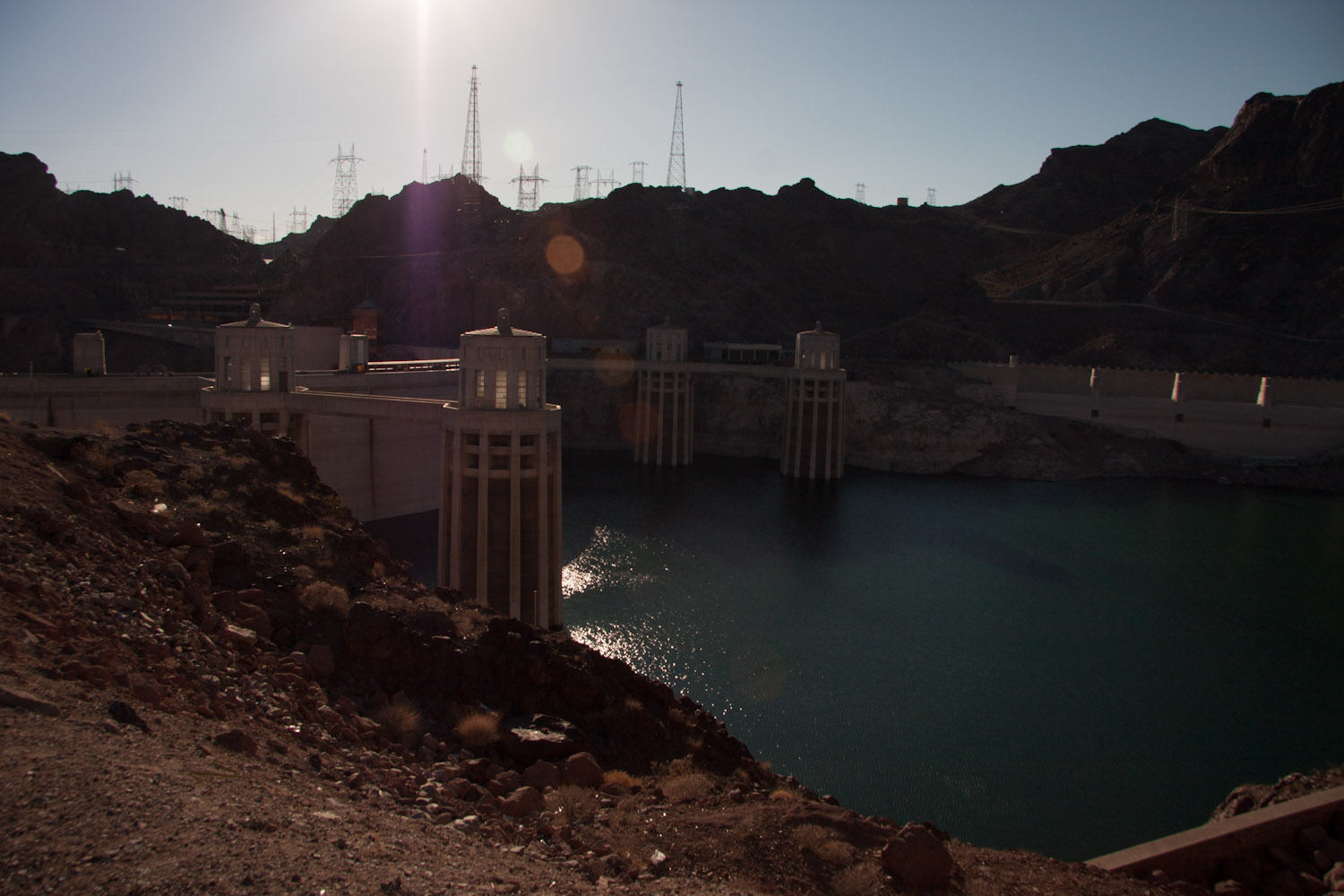 Kilometers die allemaal op de grote hoop werden gesmeten en uiteindelijk hebben geleid/gelijd tot een totaal van net ietske meer dan 8000km. Jamaja, achtduust is da eh. En onze auto, die tuft nog altijd vrolijk verder. Wat krasjes op de zijkant, een nagel in de band rechtsvoor, wat zonnecreme op het leder, een fuel-low-lampje dat maar blijft reclameren, … maar voor de rest, geen probleem. Zelfs niet toen we aan Lake Mead (u herinnert zich de automiserie van vorig jaar nog wel) passeerden. Deze keer hebben we dus wel de Hoover Dam (met bijhorend Lake Mead) kunnen bezoeken.
