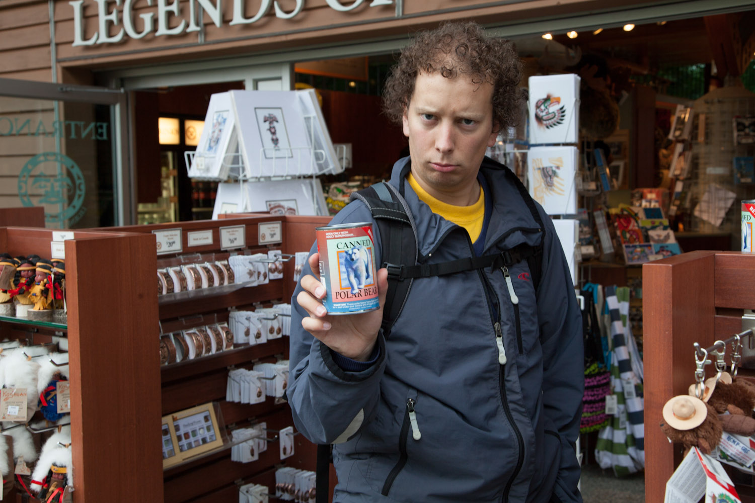 En geloof het of niet, maar we hebben al 3 keer beren gezien vandaag! 2 daarvan kunt ge zien in onderstaande youtube-filmpjes (waarvan we nog maar een hebben geupload), de derde was nen kleinen beer die de weg overstak en die gelukkig op onze voorruit dashcam-fotolens kwam te plakken (die foto halen we morgen van de camera). Ondertussen hebben we ook al beren-pepperspray gekocht. 37 flappen voor een buske da we waarschijnlijk nooit gaan gebruiken, maar ge weet maar nooit eh. En als we het op het einde van de reis niet gaan nodig gehad hebben, heeft Koen beloofd dat we het op zijn ogen mogen uittesten. Als ge denkt dat Koen zich niet aan die belofte zal houden, kunt ge in de comments natuurlijk al een aantal bakken bier ter beschikking stellen om hem eventueel alsnog te kunnen overtuigen.