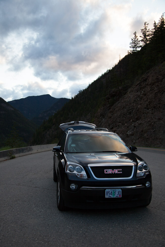 En of dat het aan het regenen was vandaag, godverdoeme zeg! Tis 20u, we zijn aan het cruisen richting Lillooet met Black Box Revelation op de achtergrond (tis zonet veranderd naar Goose), kheb eindelijk mijn plasje mogen doen en de regen is gestopt. Tzal misschien toch nog goekomen vandaag.